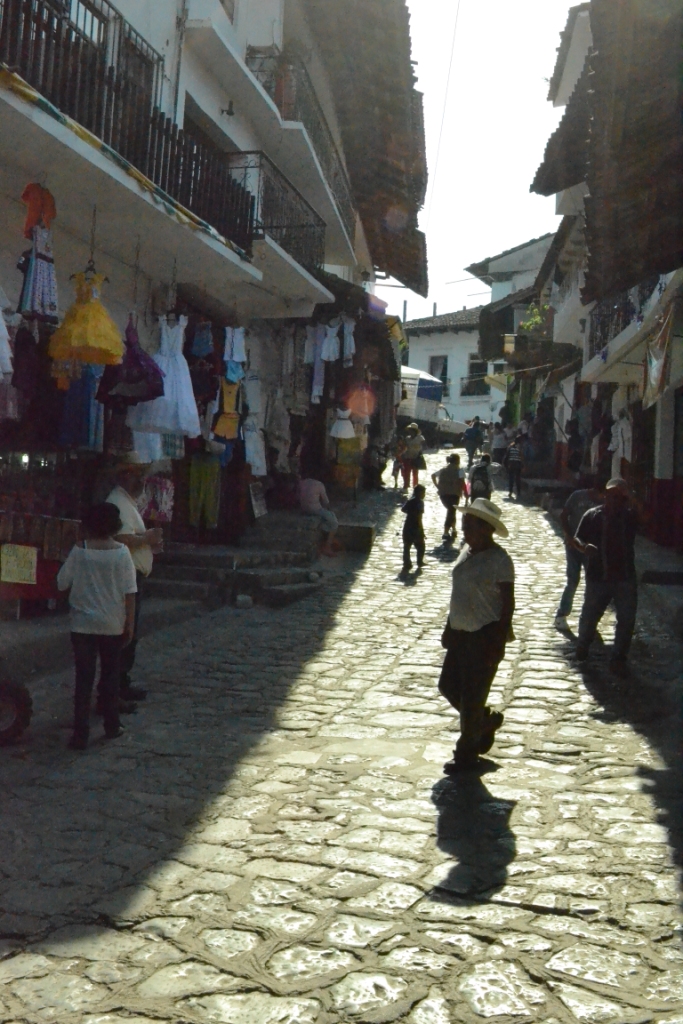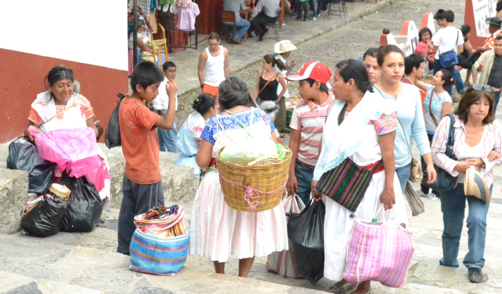 Comimos en el centro. En la mayoría de los restaurantes se prepara comida típica y casera. Las cocineras sonríen y cocinan con gusto. Están abiertas a la plática y a las bromas. Ese día conocimos a Lupita con quien reímos bastante, mi marido se la pasó haciendo bromas y bueno, con Lupita no fue la excepción. Nos preparó unos ricos antojitos. Yo los pedí de queso. Después seguimos nuestro camino por las bellas calles del centro.  En las calles podemos encontrarnos con las hermosas blusas de chaquira o bordadas que hacen las mujeres indígenas. Ellas están sentadas, concentradas en su arte, hacer estas blusas es un arduo y admirable trabajo. Yo quiero tenerlas todas: con manga larga, sin mangas, manga corta, bordadas de azul, rosa o café, con chaquiras de diferentes colores. Quiero llevar puesta la historia de esas manos que nunca paran de tejer, coser, bordar: CREAR. No sólo se trata de blusas, también hacen rebozos, hay bandas para el pelo, bolsas y un sinfín de artesanías. Todo está hecho a mano.
