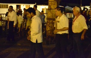 Fue maravilloso visitar Cuetzalan en días santos. El jueves en la noche, al lado de la iglesia, se juntaron a velar a Jesús. Había muchos hombres y mujeres reunidos cantándole a Jesucristo. Pasaron toda la noche así. A mí no me había tocado ver algo así antes. Me había tocado ver representaciones del calvario de Cristo pero ver a las personas reunidas velando al Cristo, cantando su tristeza, fue algo nuevo para mí. Me llamó mucho la atención que eran los hombres quienes cantaban. El viernes en la noche vimos la Procesión del Silencio.