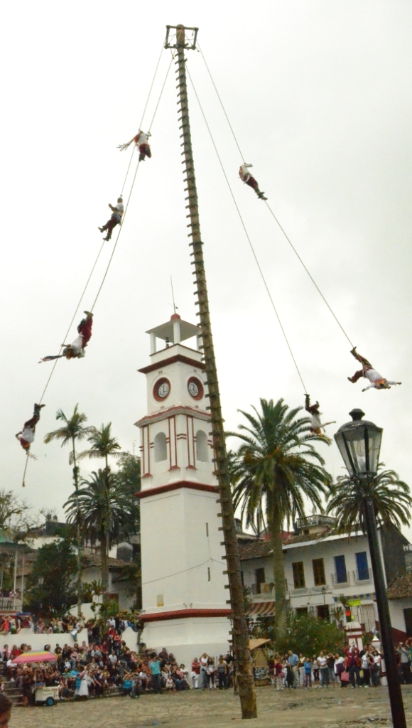 3. Que maravilloso que hayan visitado cuetzalan, uno de los pueblos mágicos que tenemos en nuestro méxico. Efectivamente en los inicios de nuestra época la danza de los voladores inicio en la región de los totonacas, esto ha implicado una pólemica sobre si se origino en Papantla o Cuetzalan, pero yo que soy de Papantla me importa muy poco donde inicio la danza sino el propósito de ella: pedirle a los dioses la buena fortuna en la siembra, con todos los simbolismos que representa cada momento de la misma. La solemnidad de la semana santa estremece el espiritu debido a esa simbiosis entre la fe católica y el pensamiento indigena que nos invita a la reflexión. Ojala no hayan subido de peso con los antojitos que comieron.