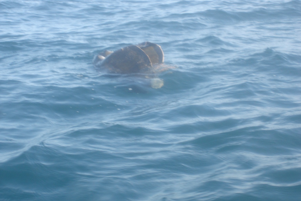 La playa es muy hermosa y tranquila. A diferencia de otros lugares, no hay multitudes de personas peleando por un buen lugar para asolearse ni tampoco hay tantos vendedores como en Acapulco, donde uno no puede relajarse porque cada cinco minutos alquien quiere vendernos algo. Por lo tanto uno puede estar tranquilo en la playa. Al llegar hundí mis pies en la arena y dejé que las olas me saludaran. El sonido del mar siempre me ha hipnotizado y podría quedarme ahí horas enteras mirando al cielo, inmóvil. ¡Así me gustaría estar ahora! Claro que también se pueden hacer más cosas que sólo contemplar la naturaleza. Dimos un paseo en lancha y los delfines nadaban junto a nosotros. Yo amo a los delfines. Cuando tenía 4 años, con mis papás fuimos a la Isla de las Isabeles en Nayarit. Fue un largo viaje y antes de ir a la isla, pasamos la noche en San Blas. Al día siguiente nos llevaron en lancha a la isla. El recuerdo que prevalece en mí es el de los delfines nadando a nuestro lado, acompañándonos en el camino. En Mazunte tuvimos una experiencia parecida y yo no podía dejar de sonreír mientras observaba a los delfines divertirse muy cerquita de nosotros. Me pasé la casi todo el tiempo tratando de tomarles una buena foto pero lo único que pude atrapar fue la borrosa silueta de uno de ellos. El objetivo principal de ese paseo en lancha era ver a las tortugas y nadar cerca de una de ellas. Para mí no podría resultar mejor puesto que los delfines y las tortugas son mis animales favoritos. La mayoría de las tortugas que vimos eran parejas apareándose, nos tocó el momento romántico del día y por supuesto no faltaron las bromas y las risitas chistosas de algunos. Más tarde el guía vio una tortuga solita, se lanzó por ella y la atrapó. Algunos nos aventamos al agua y estuvimos cerca de ella. Después, con mucho cuidado, sin lastimarla, la subió a la lancha sólo por unos instantes. Por último fuimos testigos de su triunfal regreso al agua. Tuvimos unos refrescantes minutos en el agua antes de subirnos a la lancha y regresar a la playa.