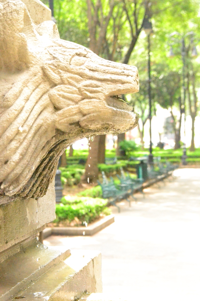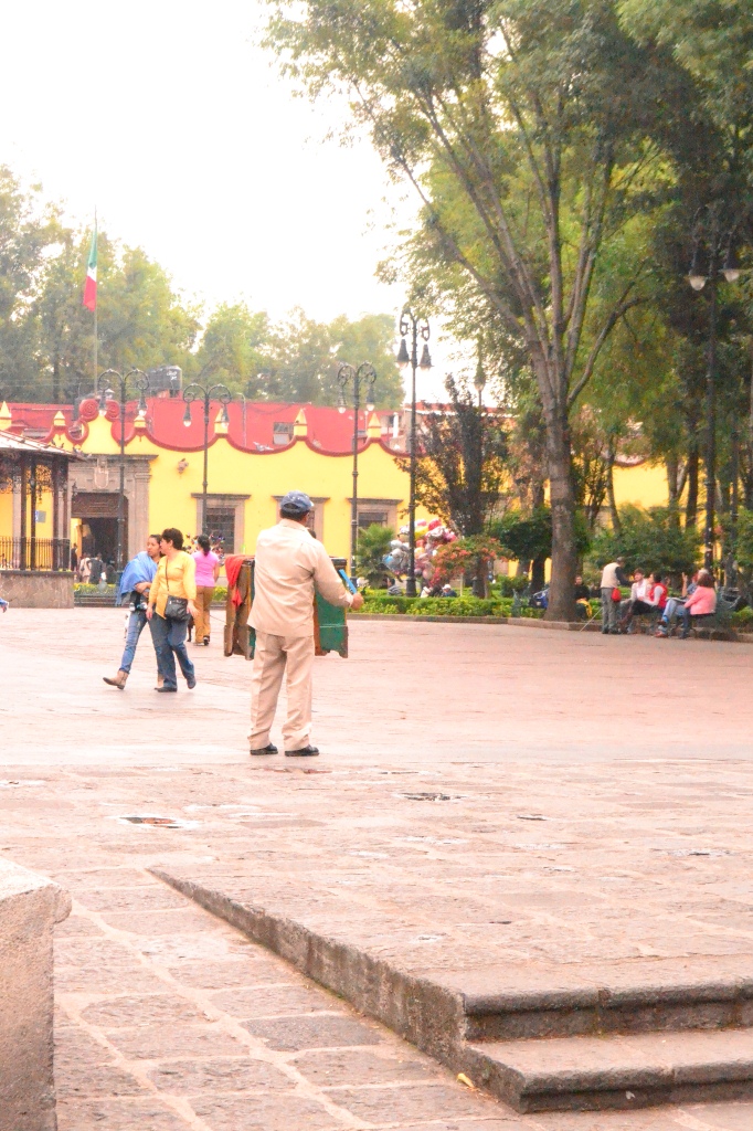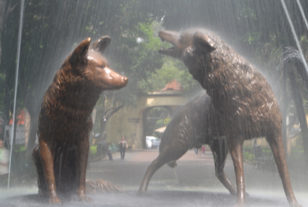 Siempre hay algo que hacer en el Centro Histórico de Coyoacán y la ventaja es que no es necesario disponer de mucho dinero. El simple hecho de pasear por el centro es relajante y divertido. Ayer me tocó una hermosa mañana tranquila y pude pasearme felizmente; en una tarde de viernes o en fin de semana, suele haber mucha gente, también hay mimos y conciertos gratuitos. Ayer, sólo se escuchaba el ruido de la fuente que empapaba a mis queridos coyotes. Libre y con mi cámara en la mano, disfruté mi mañana.