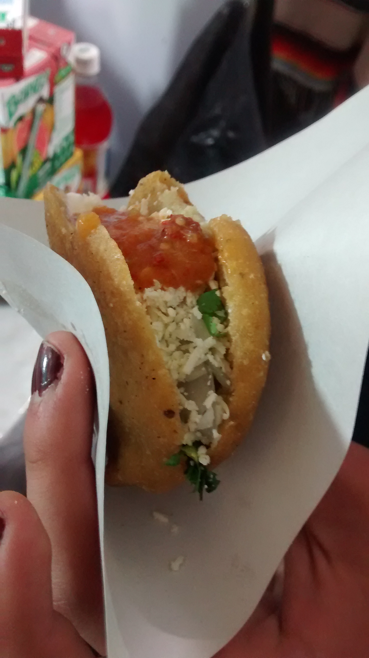 Se me antojó una gordita después de ver a mi marido comerse una. La suya era de chicharrón; yo la pedí de requesón; estaba exquisita. Las gorditas en ese puesto son pequeñas y están bien hechas (es decir que comiendo una nos quitamos el antojo pero todavía tenemos la oportunidad de comer más).