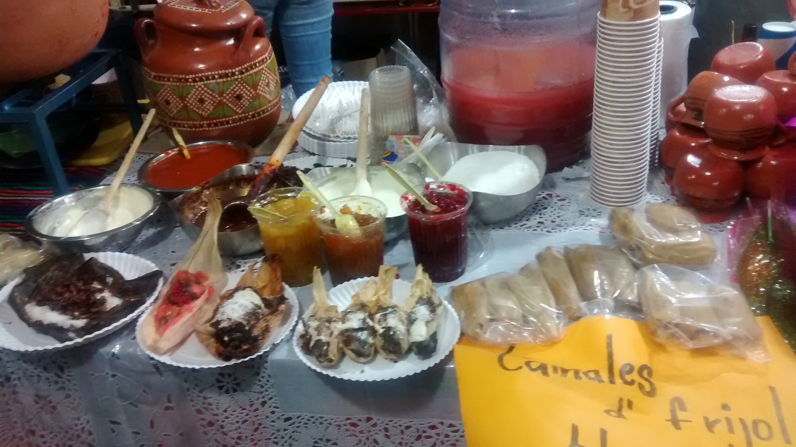 Hay más de cien puestos de tamales de diferentes tamaños y sabores. Los hay salados y también dulces. Hay también diferentes bebidas para acompañarlos: chocolate caliente, café de olla, agua prehispánica (agua de chocolate) y atoles de diversos sabores desde el típico champurrado hasta el de novia y de monja