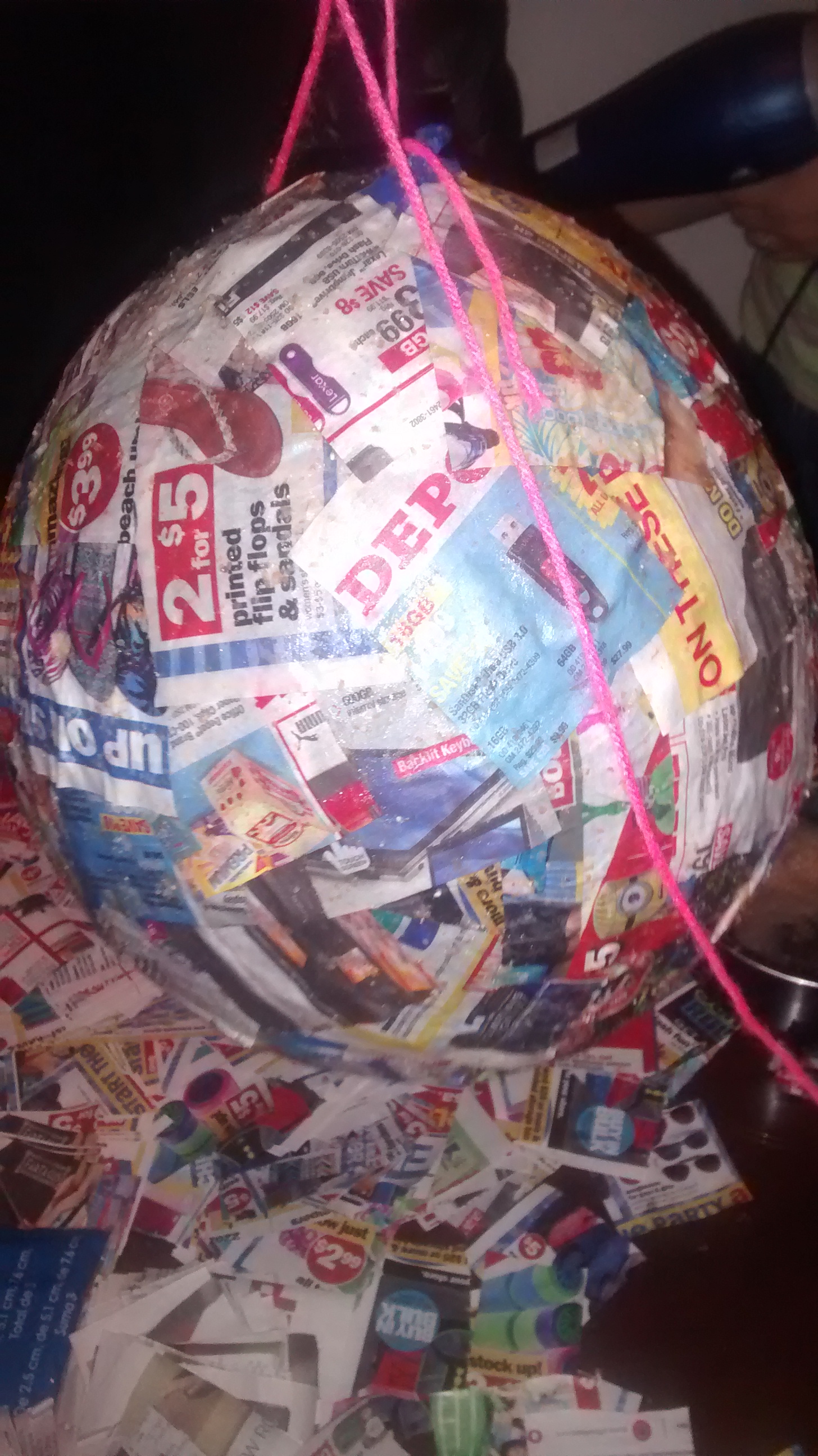 Comenzamos a hacer la piñata Fabricio, Susan y yo. Fabricio se desesperaba y Susan y yo reíamos.