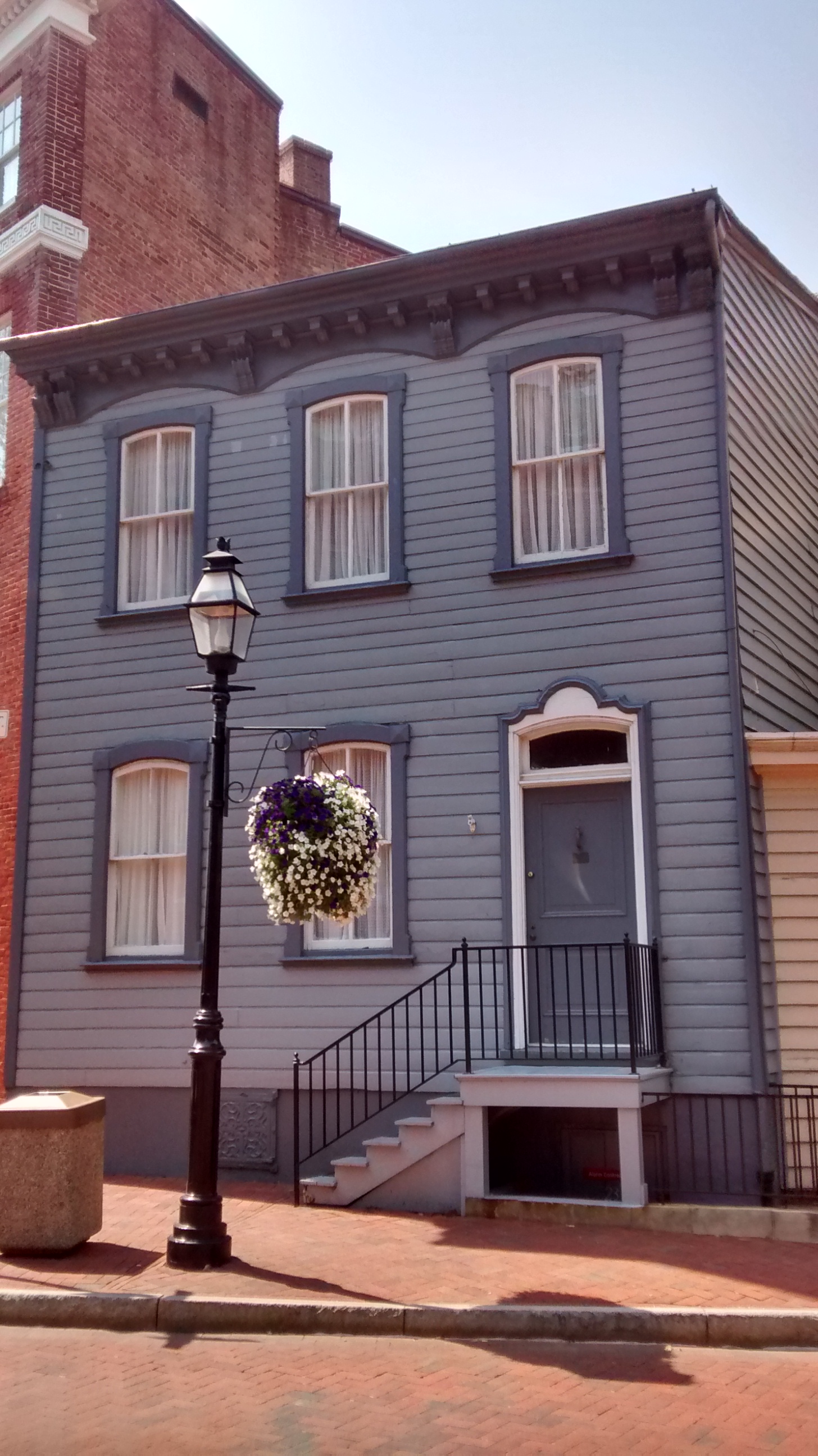 Si mal no recuerdo, el guía se llamaba  Michael. En aproximadamente 45 minutos, el guía nos dio un  paseo por los lugares más relevantes de Annapolis. Nos dio muy buenas explicaciones y siempre de la mejor manera posible. Nos dijo que podemos saber en que época fueron construidas las casas por su color.  Las casas color crema, por ejemplo,  se construyeron alrededor de 1760;  mientras que una azul con rojo, al principio de los 1900s.  ¿Cómo saberlo? La respuesta está en los pigmentos para pintar las casas. El azul todavía no se fabricaba en 1700 o 1800.