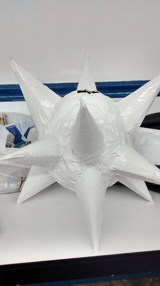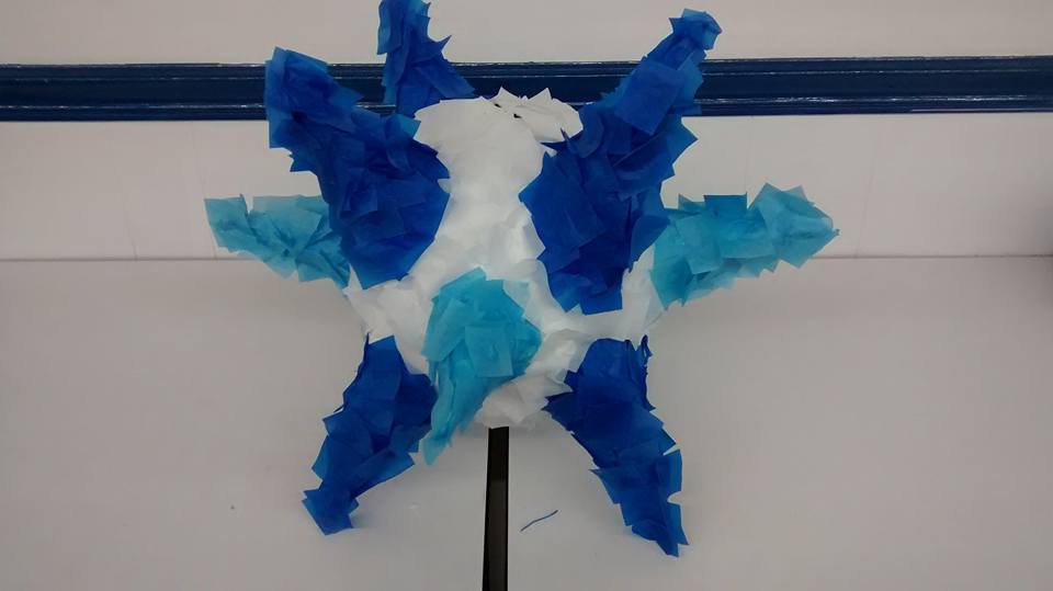 Después de comer una deliciosa pasta que cocinó mi amigo, acompañarlo a su juego de softball y mientras tanto convivir un rato con sus amigos, nos pusimos a trabajar en la piñata. Todavía nos faltaban los picos y decorarla. Fabricio hizo los picos y después juntos la decoramos con el papel de china. A veces platicamos, a veces reímos, a veces permanecimos en silencio concentrados en acabar nuestro proyecto. En este viaje fue toda una aventura hacer esta piñata. Fabricio estaba muy emocionado por hacerla. Los primeros días me divirtió un poco su falta de paciencia (es una de las personas más pacientes que conozco) para esperar a que las capas de engrudo con periódico (en el globo) se secaran. Usamos hasta una pistola de cabello para acelerar el proceso de secado. Él nunca perdió el entusiasmo pero si divirtió más decorándola.