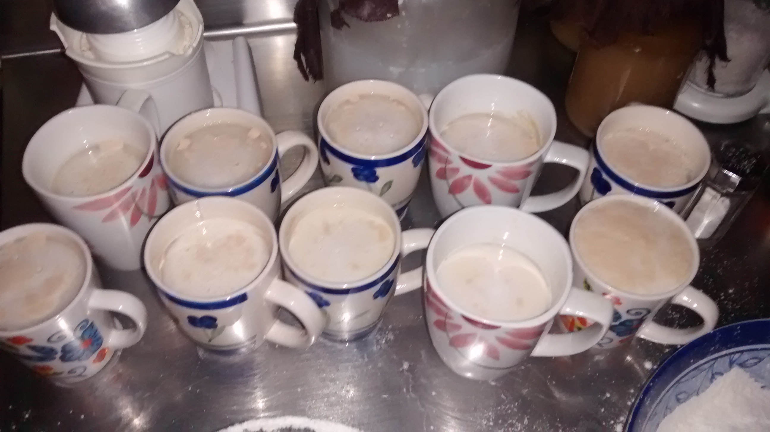 No es lo mismo hacer masa para una pizza que para diez. De haberlo hecho sola, no habría terminado a tiempo pero Ness estuvo conmigo toda la mañana ayudándome con mucho entusiasmo y cariño. Así que comenzamos a trabajar. Mientras yo disolvía la levadura en agua tibia, ella cernía la harina en los diferentes tazones. Estaba un poco acelerada, pero Ness me ayudó a calmarme.  Fue divertido cocinar y también fue una carrera contra el reloj.