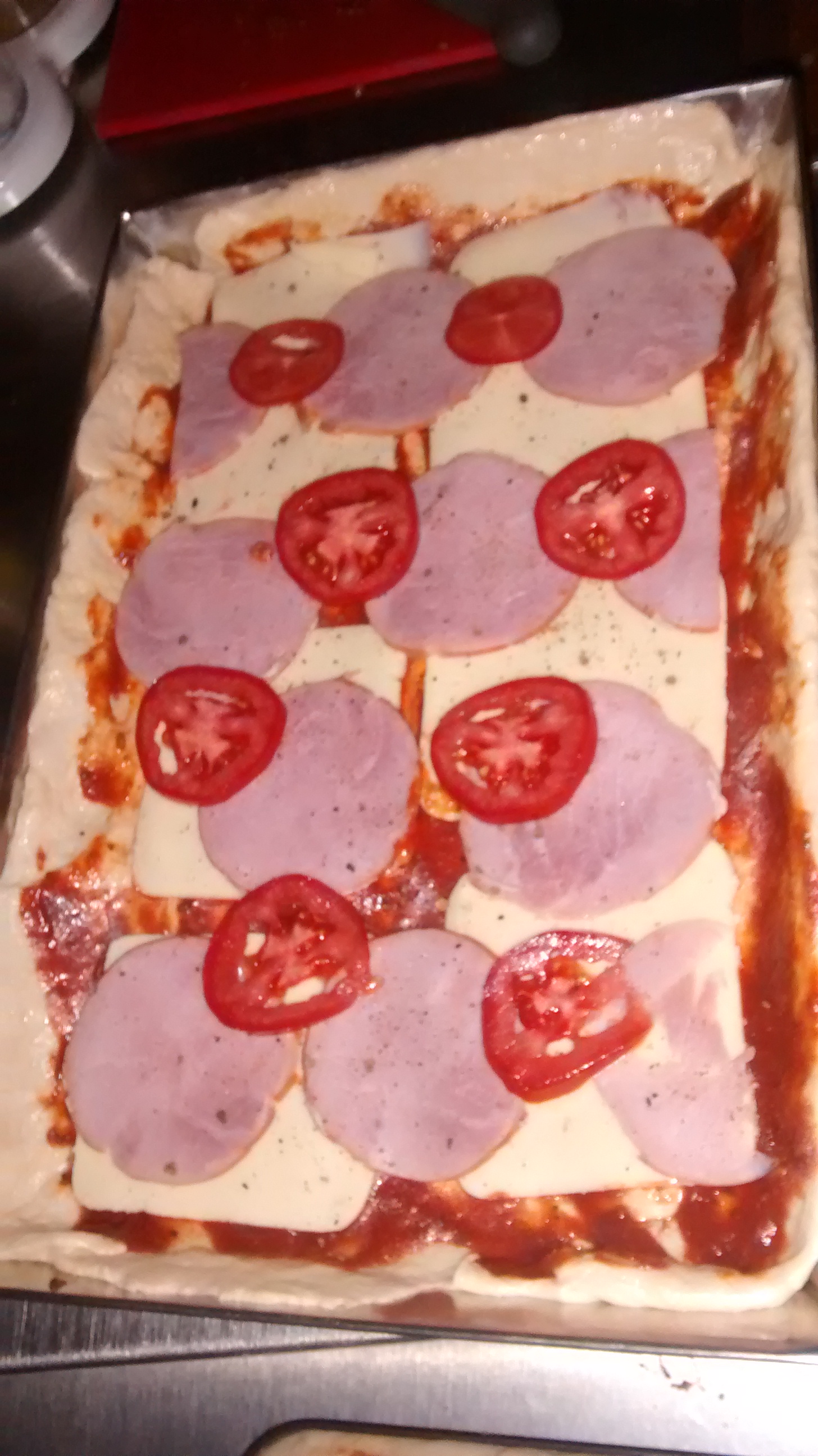 Hacer pizzas no es difícil pero sí muy laborioso, sobre todo cuando se trata de hacer diez pizzas en sólo unas cuantas horas. Nos levantamos muy temprano para ir a comprar los ingredientes al mercado de Portales. Compramos mucha harina, levadura, aceite de oliva, salsa de tomate, queso mozarella y otros tipos de queso, carnes frías y verduras. Al llegar a casa llegó el momento de ponerse a trabajar.