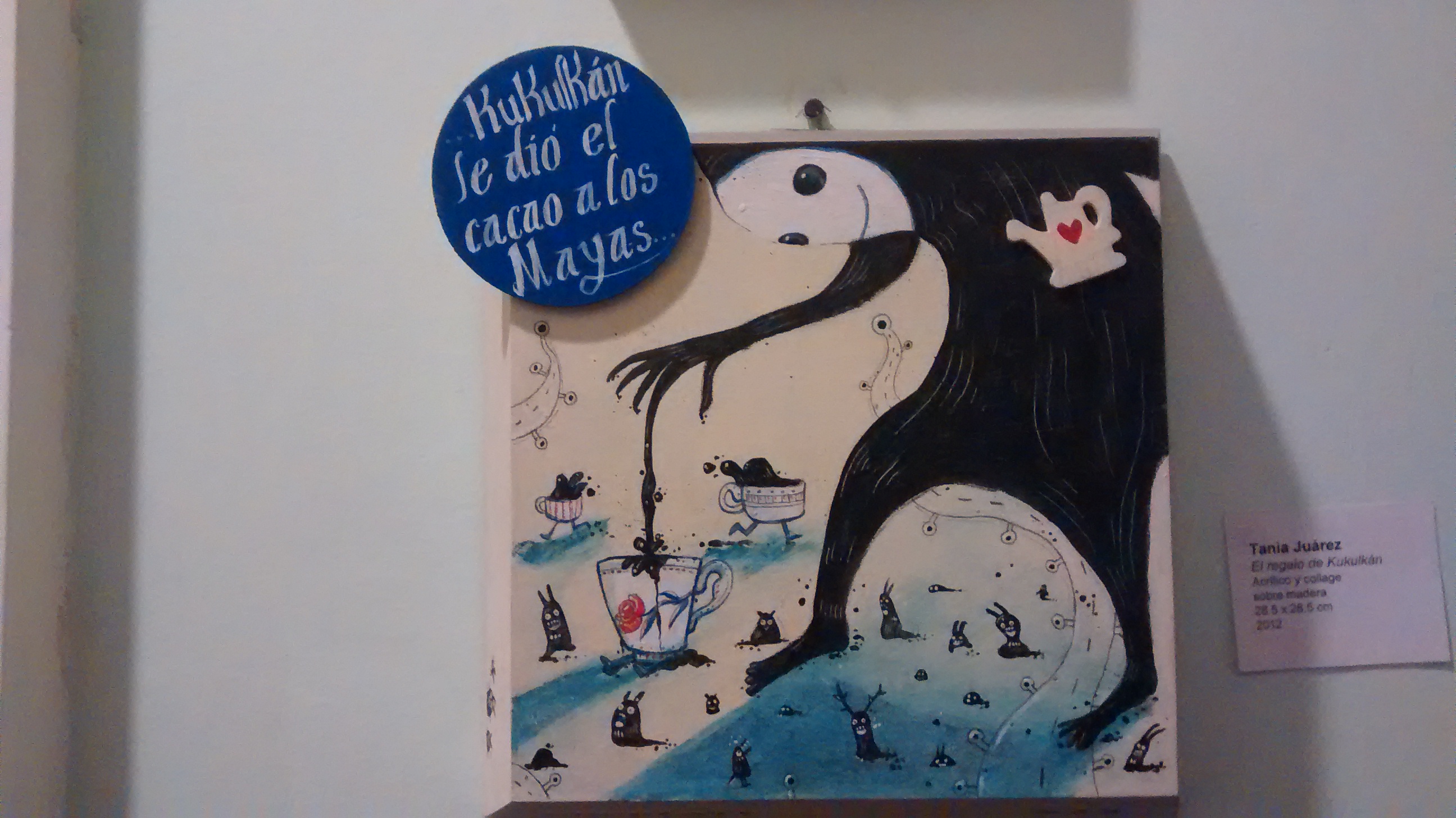 Me gustaron las pinturas que tienen como tema el chocolate: Chocolate Amargo de Flavia Zorrilla; El Regalo de Kukulkán y La Hora del Chocolate de Tania Juárez.