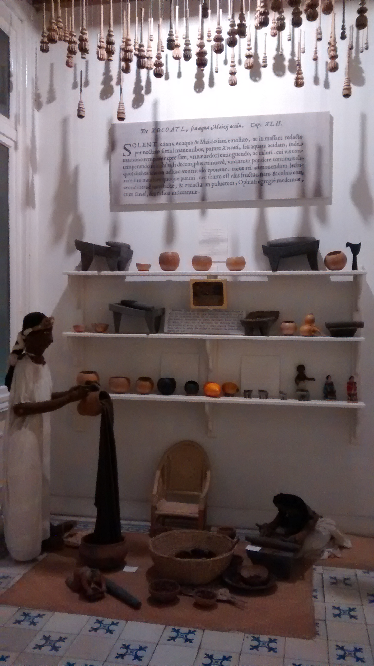 El museo está en el primer piso. Tiene varias salas en las cuales nos van contando la historia del chocolate en México desde los tiempos prehispánicos. Aunque lo vi hace algunos ayeres en la escuela, confieso que ya se me había olvidado que alguna vez el cacao llegó a usarse como moneda en México. En las salas podemos encontrar algunos instrumentos para preparar el chocolate como, por ejemplo, los molinillos.