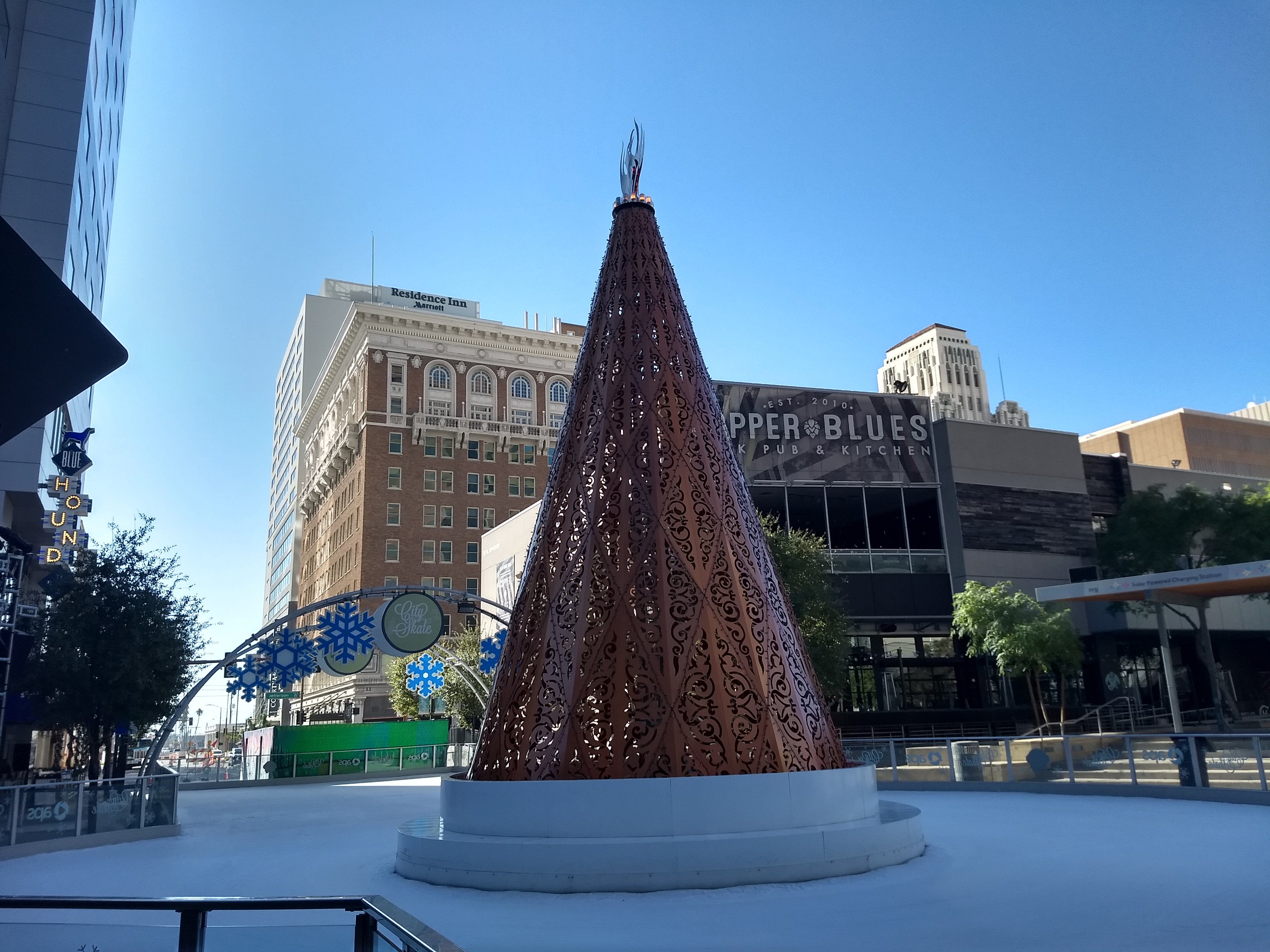 Al día siguiente fuimos al centro de Phoenix. Queríamos patinar en hielo en la pista navideña pero a esa hora estaba cerrada. Se nos ocurrió visitar el Museo de Arte, sólo teníamos que caminar unas cuantas cuadras. Fue un poco pesado porque hacía mucho calor. Me sentía como en verano en la Ciudad de México.