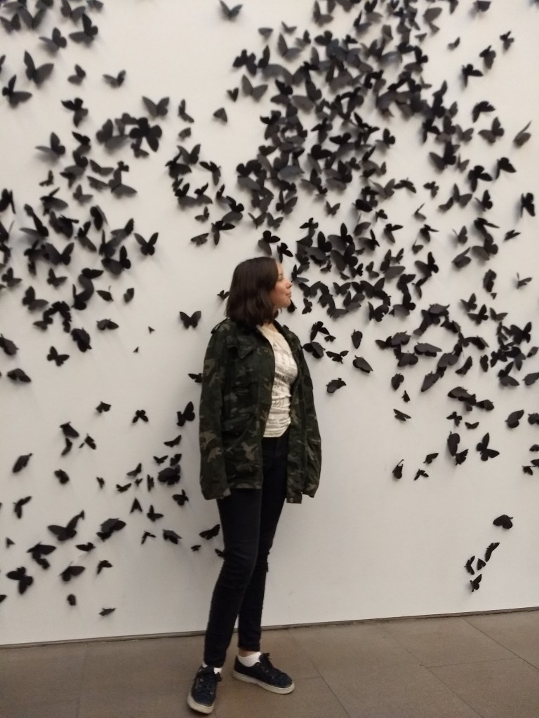 El museo está bastante grande. A la entrada estaba la exposición de Carlos Amorales, Black Cloud (Nube Negra), la cual consiste en 25,000 polillas y mariposas en papel negro en las paredes, parecía como si estuvieran descansando ahí antes de continuar su viaje.