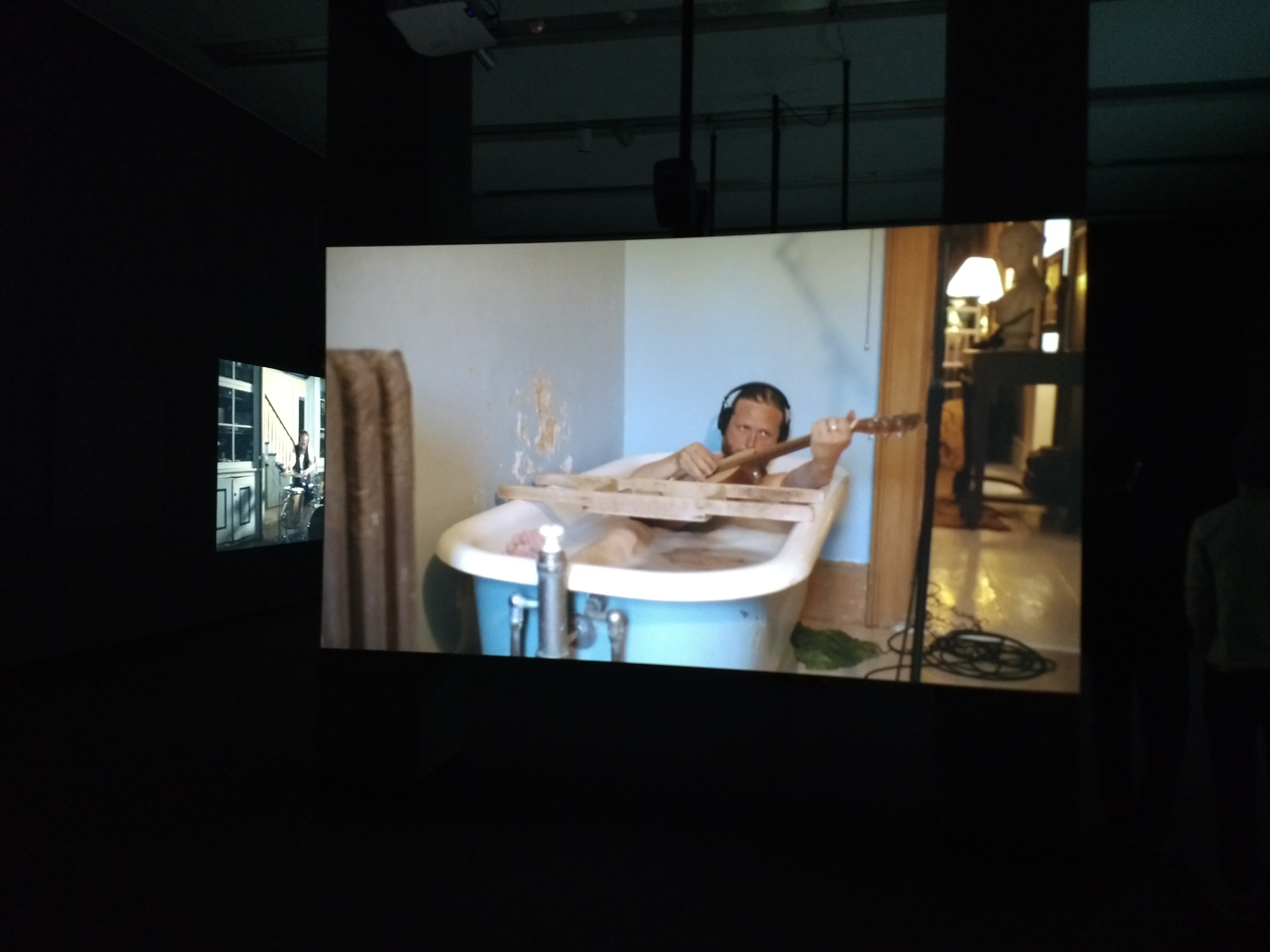 Pero mi favorita fue la exposición temporal de Ragnar Kjartansson, artista islandés que dibuja, pinta, hace instalaciones de video y performances. Había una sala con sus pinturas y otra con una instalación de video llamada The Visitors (Los Visitantes). Las pinturas me gustaron mucho pero The Visitors me conquistó. En varias pantallas se ve a diferentes músicos tocando (en su mayoría solos) en diferentes habitaciones en Rokeby Farm. Cada uno por su lado tocando la misma melodía, complementándose. Me inspiró una enorme nostalgia, una soledad muy dolorosa y también un gran amor. Me quedé absorta mirando las diferentes pantallas dejando que la música me hablara (aunque no entendiera el idioma, el sentimiento era claro para mí). Lloré fascinada con esta obra de arte nada común para mí. Me quedé con ganas de verla con más calma y menos gente. Para mi fortuna, encontré un video en internet. El sonido no es el mejor, pero al menos me ofrece la oportunidad de volver a ver esta maravilla. Esta fue mi parte favorita del museo.