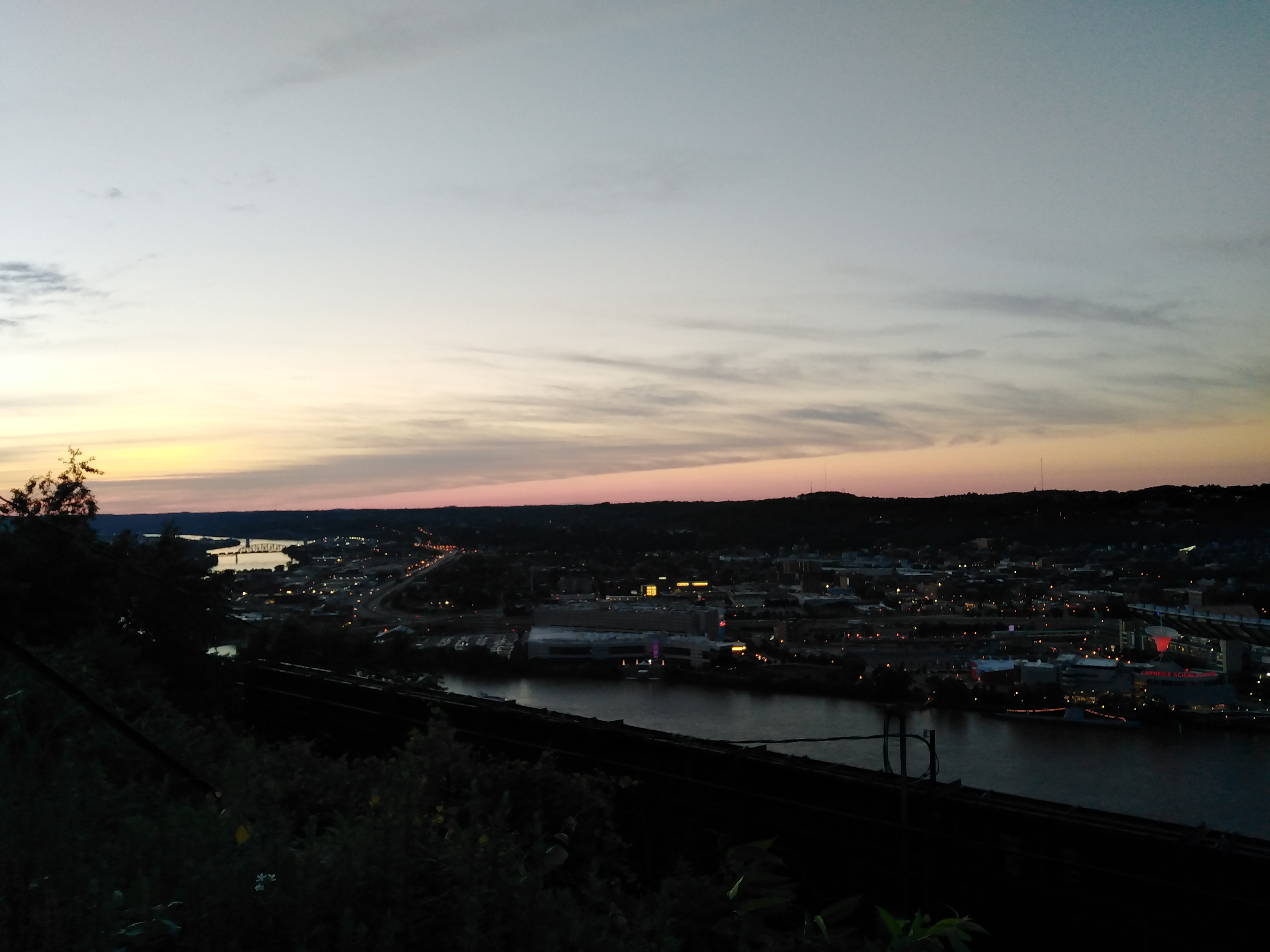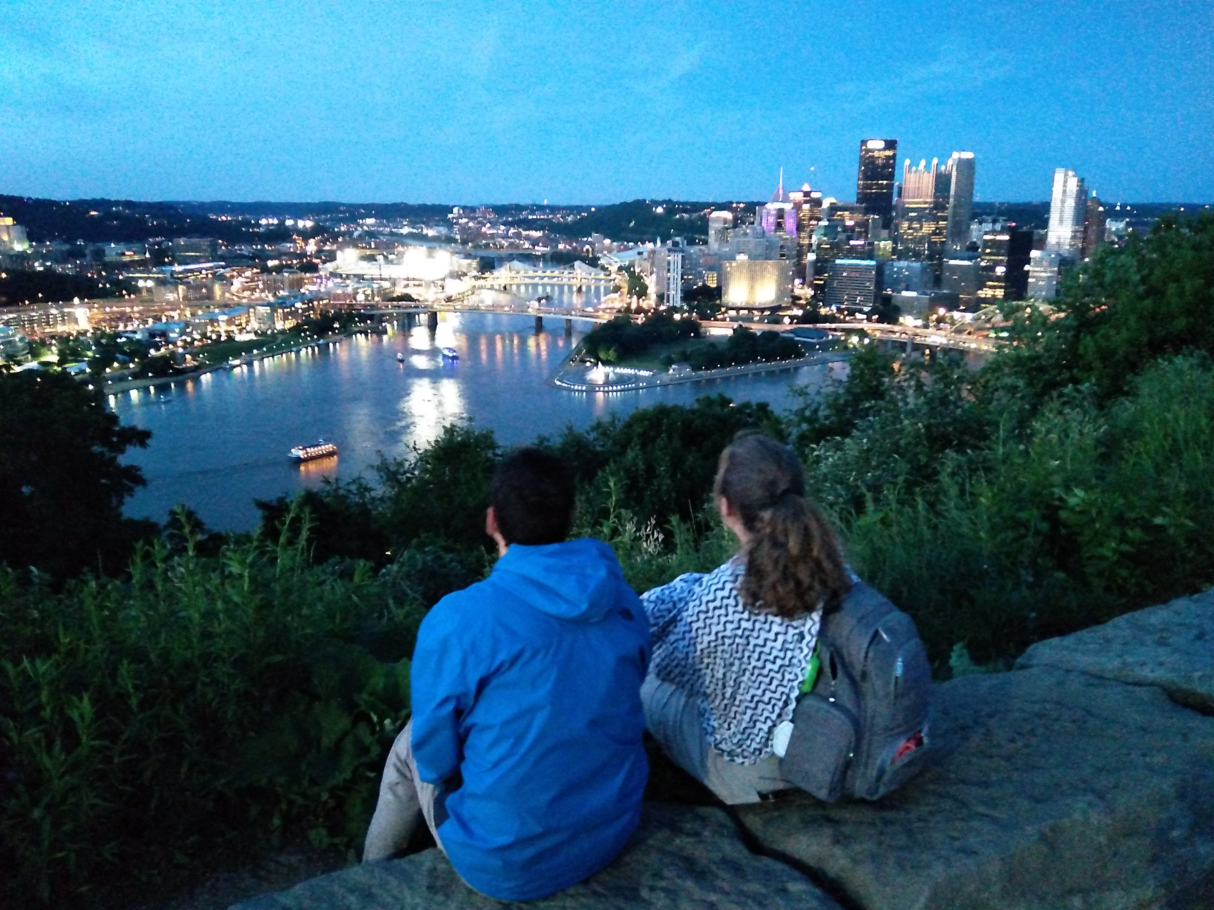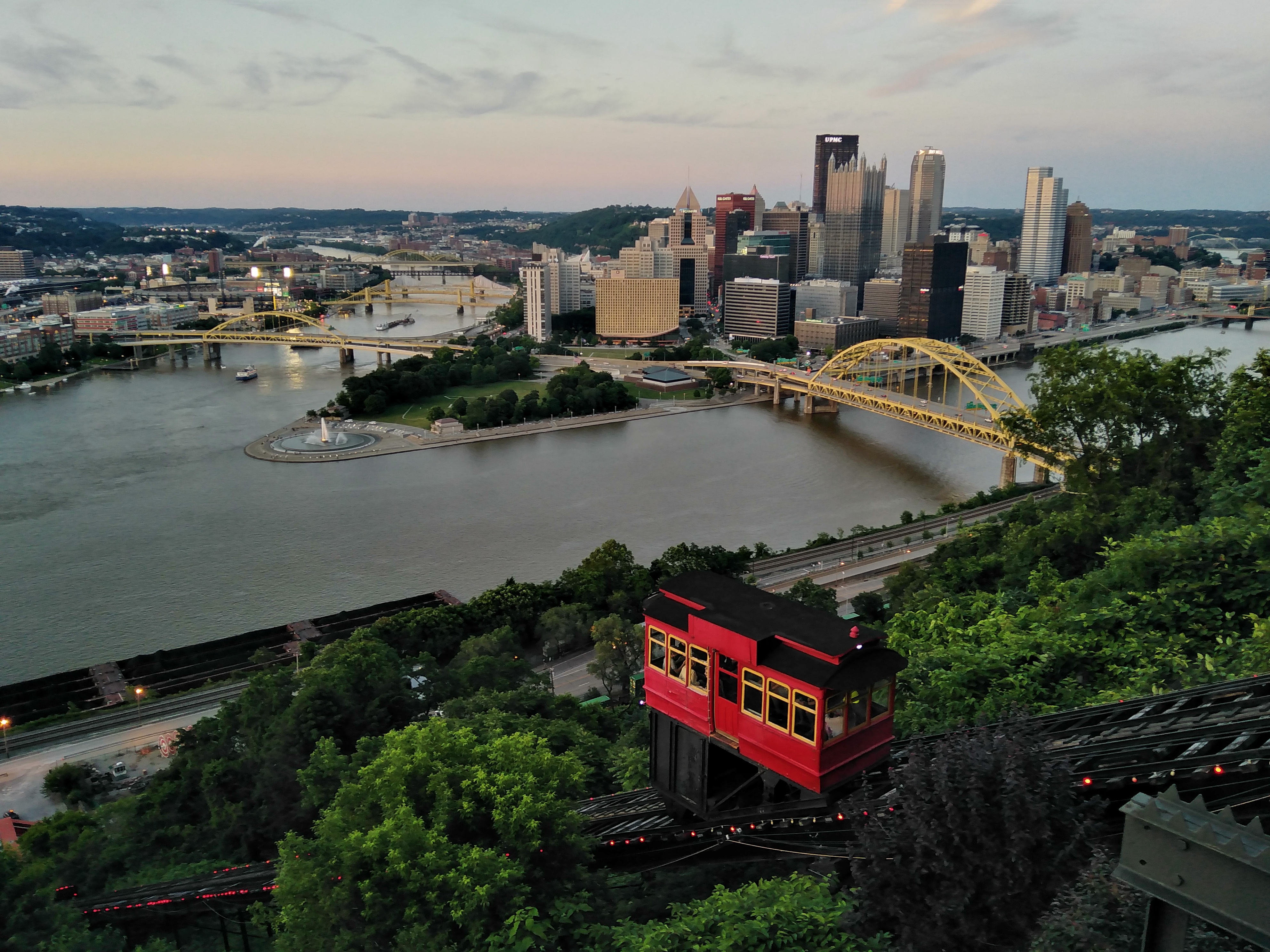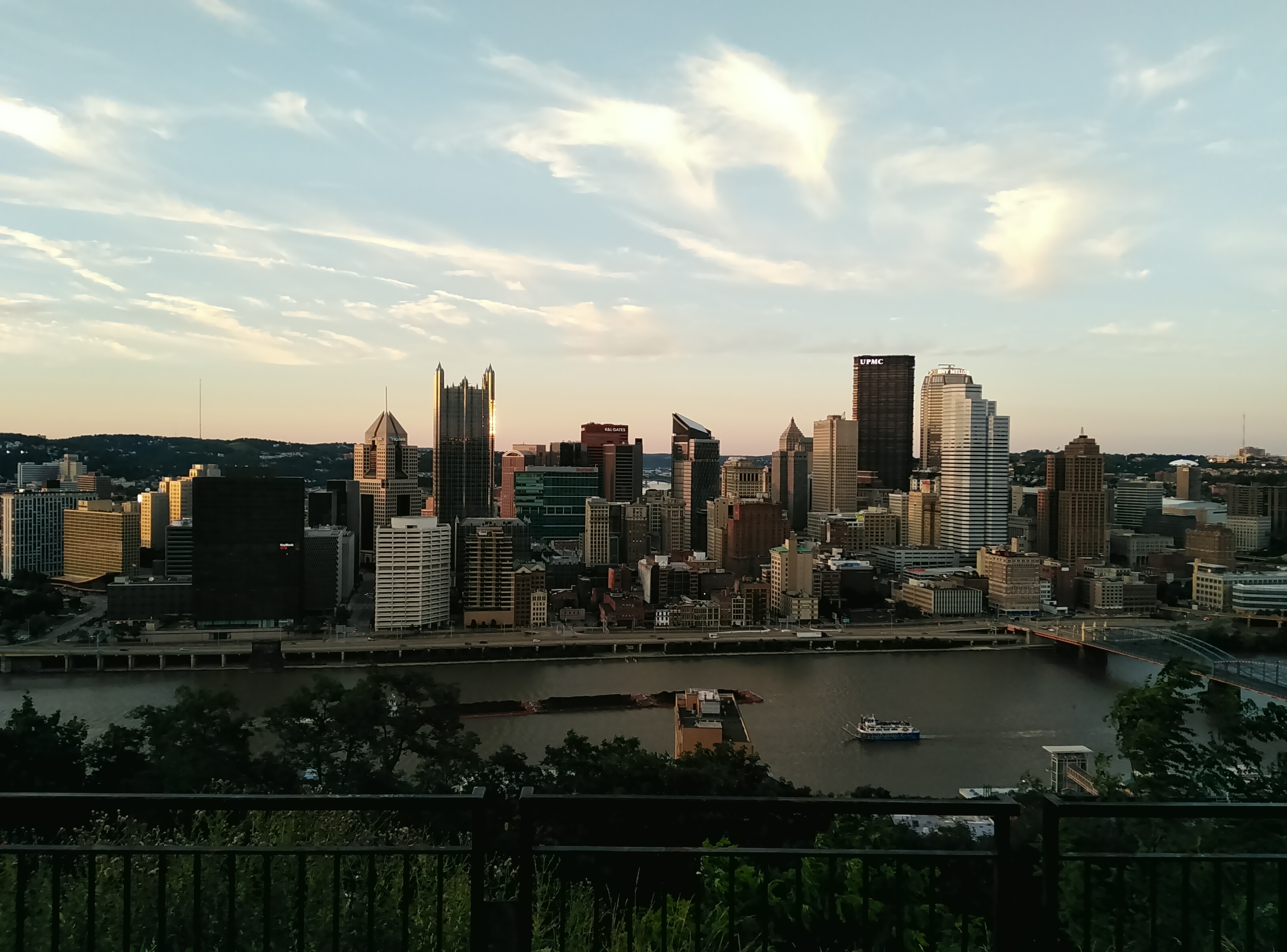 No exageran cuando dicen que en Mount Washington se encuentran las mejores vistas de Pittsburgh. No éramos los únicos ahí con la cámara (celular en nuestro caso) en mano. Estaba atardeciendo. Llegamos justo cuando el cielo comenzaba a teñirse de rojo.