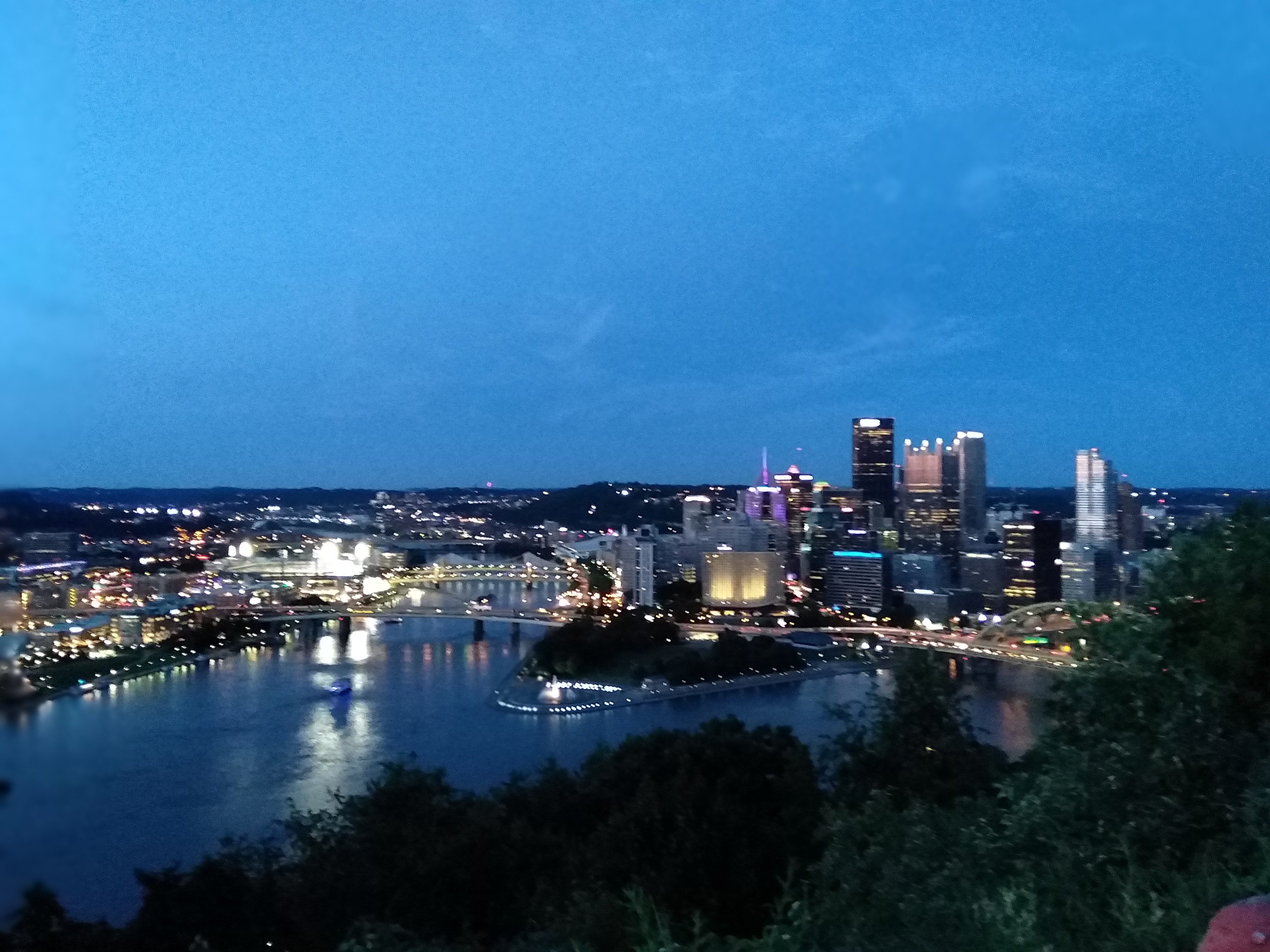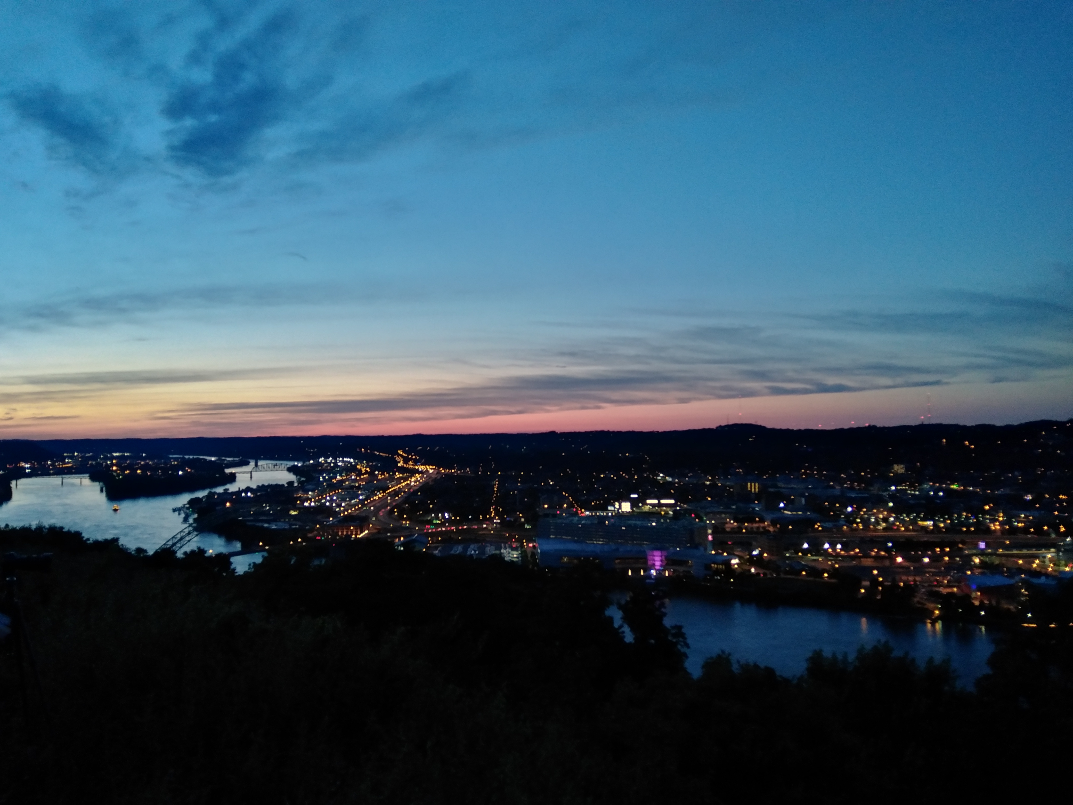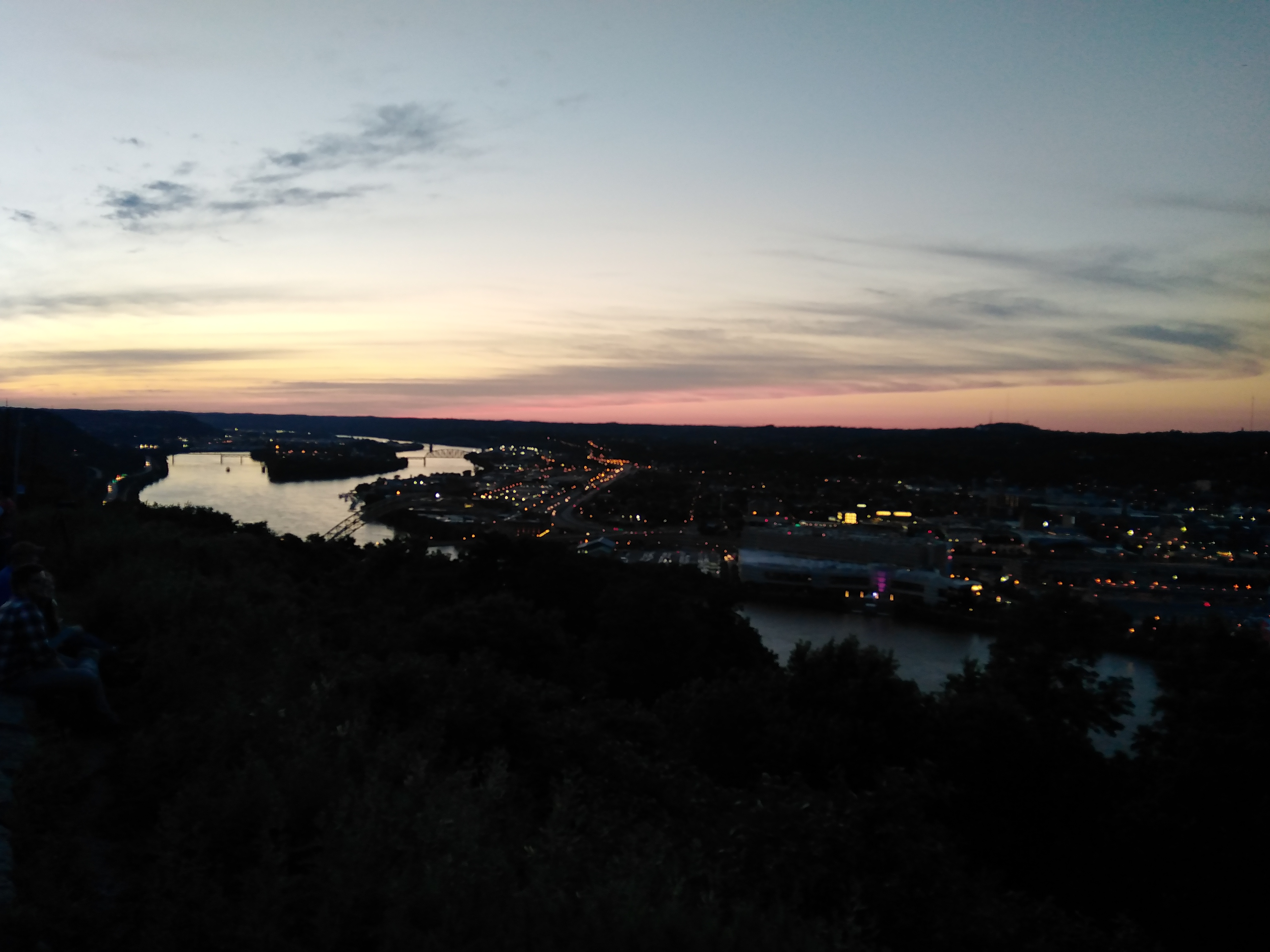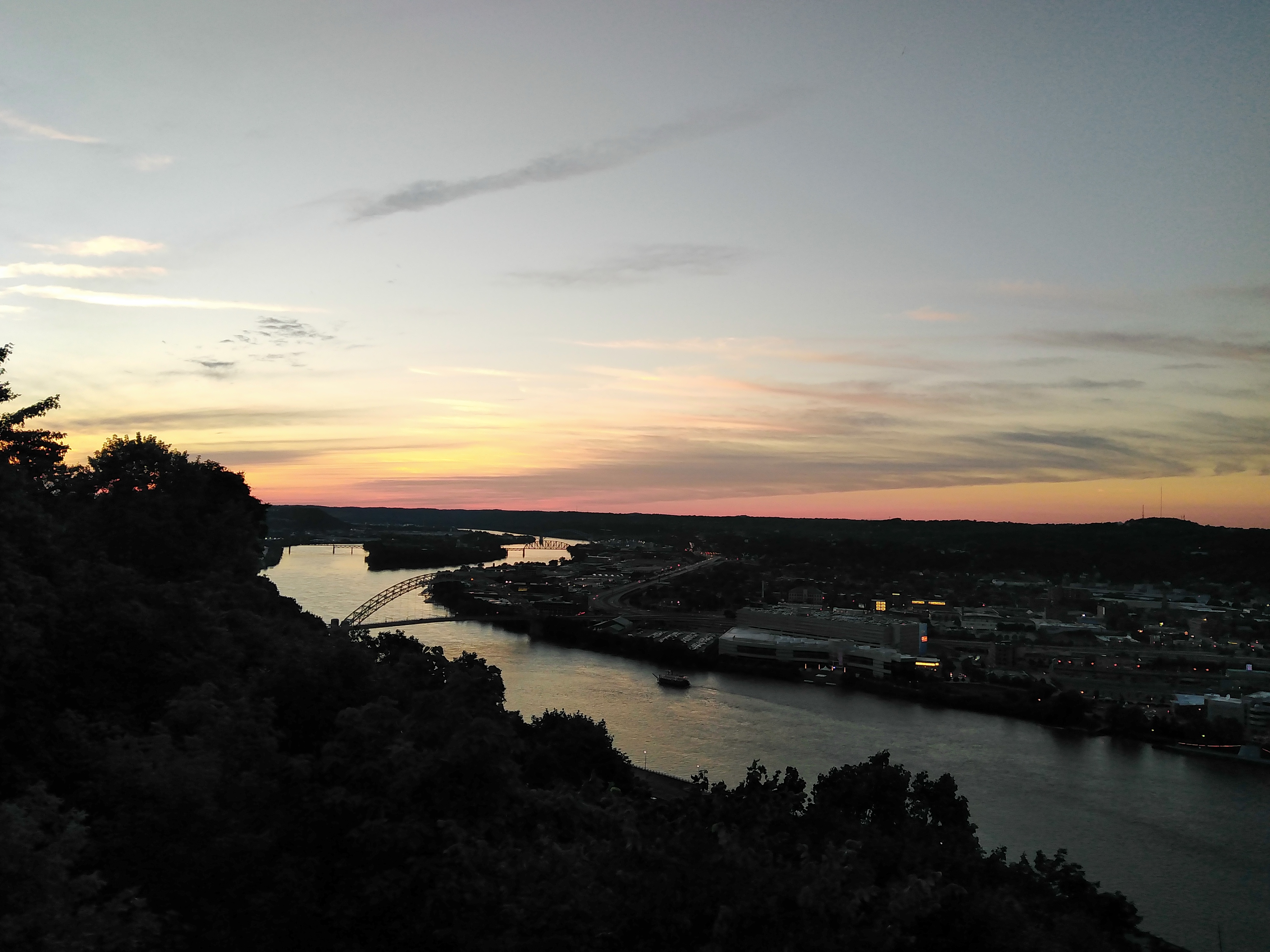 No exageran cuando dicen que en Mount Washington se encuentran las mejores vistas de Pittsburgh. No éramos los únicos ahí con la cámara (celular en nuestro caso) en mano. Estaba atardeciendo. Llegamos justo cuando el cielo comenzaba a teñirse de rojo.