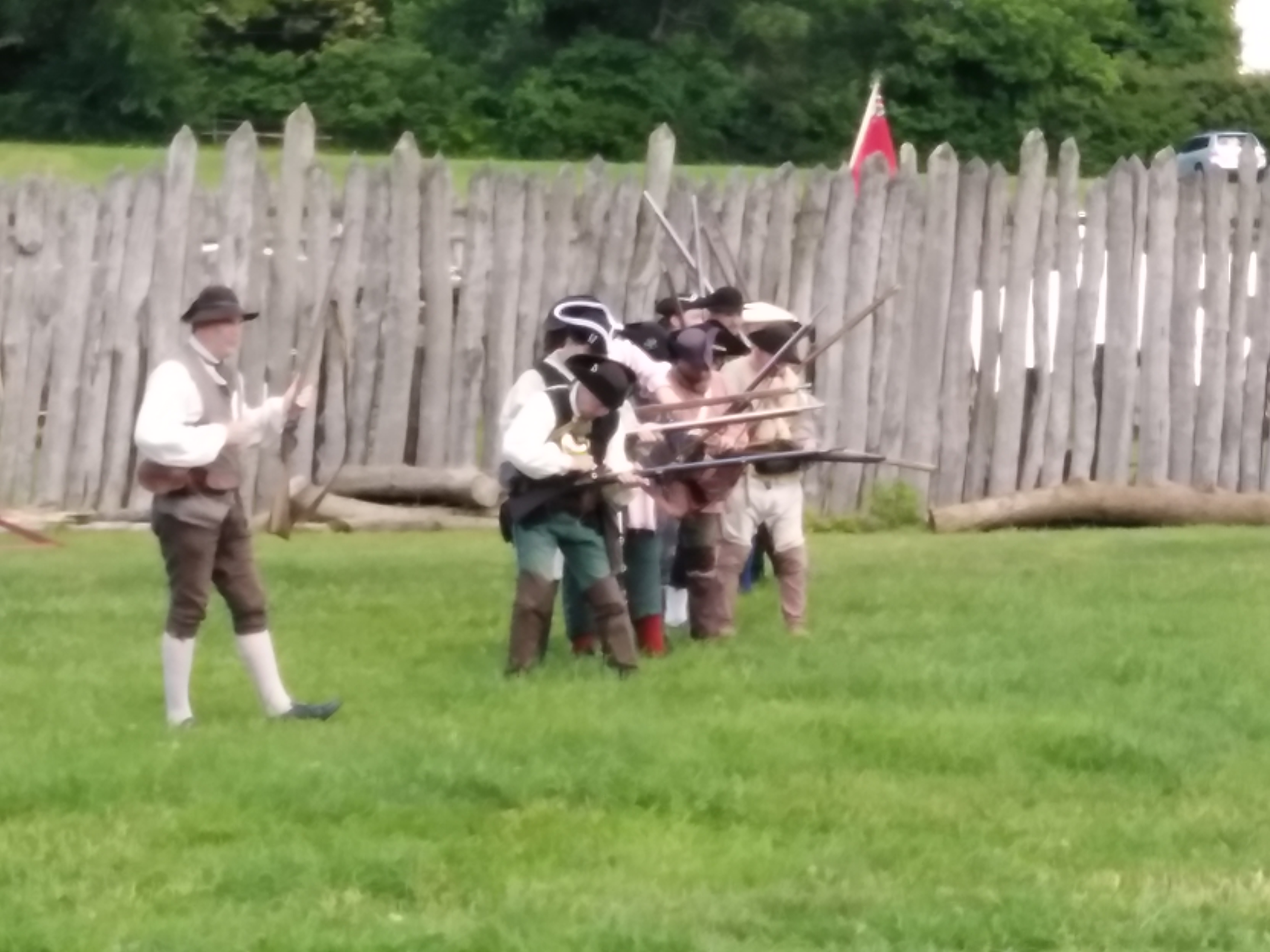 Llegamos justo en el momento de la recreación de una batalla. Me tapé los oídos cuando me di cuenta de que iba a haber disparos. Tanto los miembros del ejército como los nativos americanos estaban armados con rifles. Hubo algunos «muertos» y mucho humo.