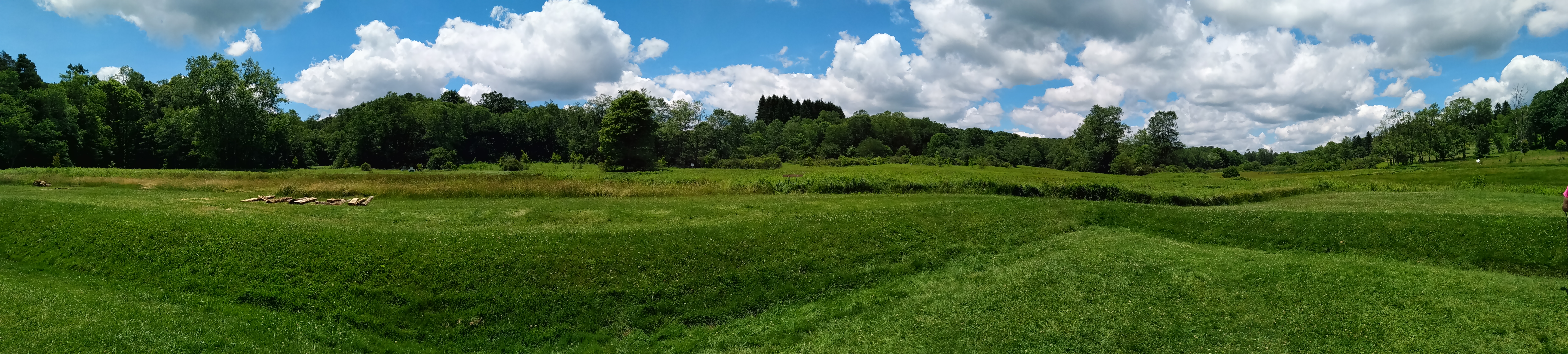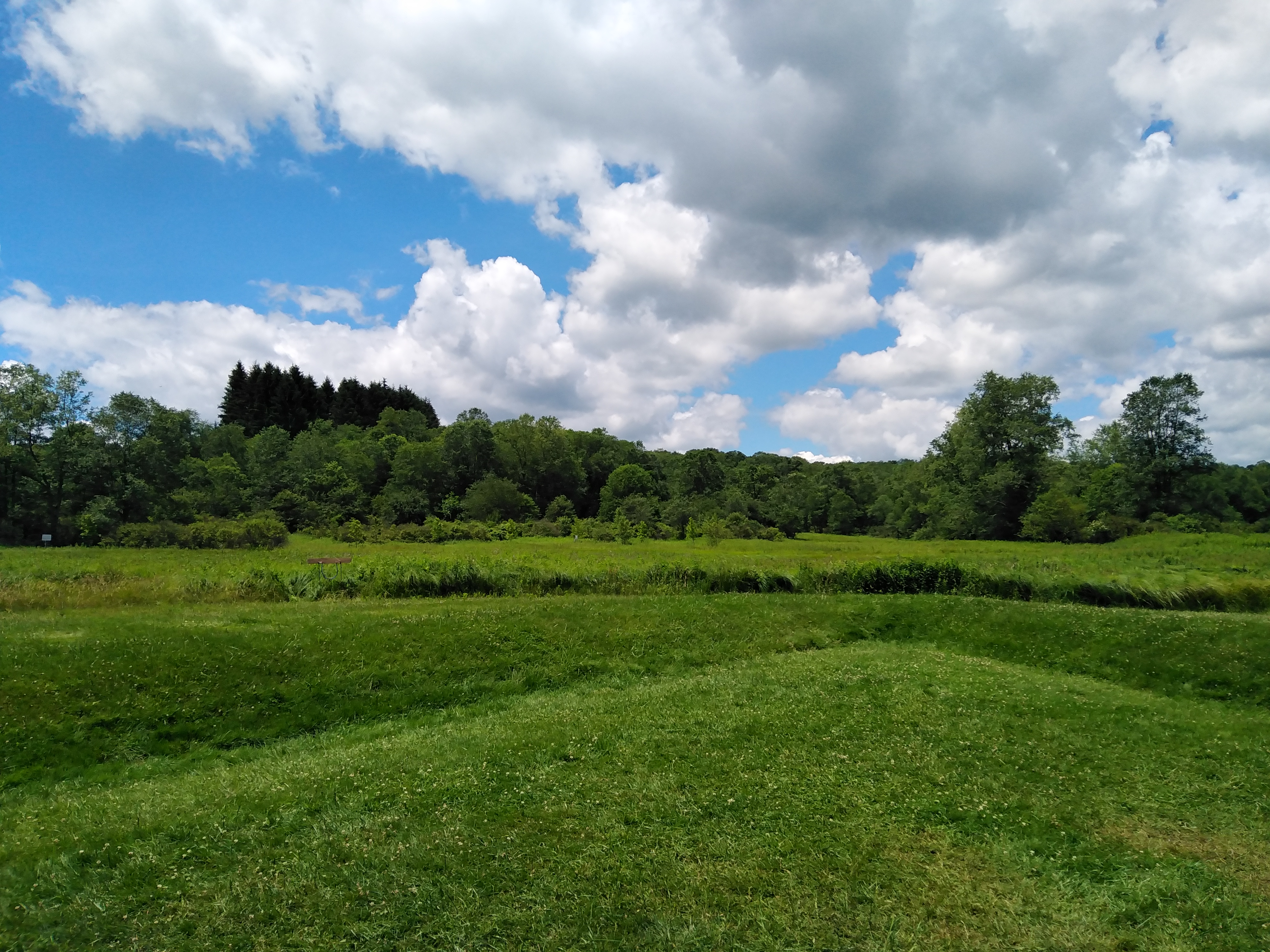 Visitamos el parque Fort Necessity National Battlefield. En este lugar George Washington construyó un fuerte para defenderse de los franceses en 1754. George Washington perdió la batalla y el fuerte fue destruido. Se reconstruyó en la misma ubicación que tenía. En mi opinión se ve muy pequeño para la cantidad de hombres que se alojaban ahí. Lo que me encantó fue el paisaje y también la explicación que nos dio el guía del recorrido. Aunque no alcancé a tomarles una foto, vimos un venado con su cría. ¡Qué belleza! 🙂