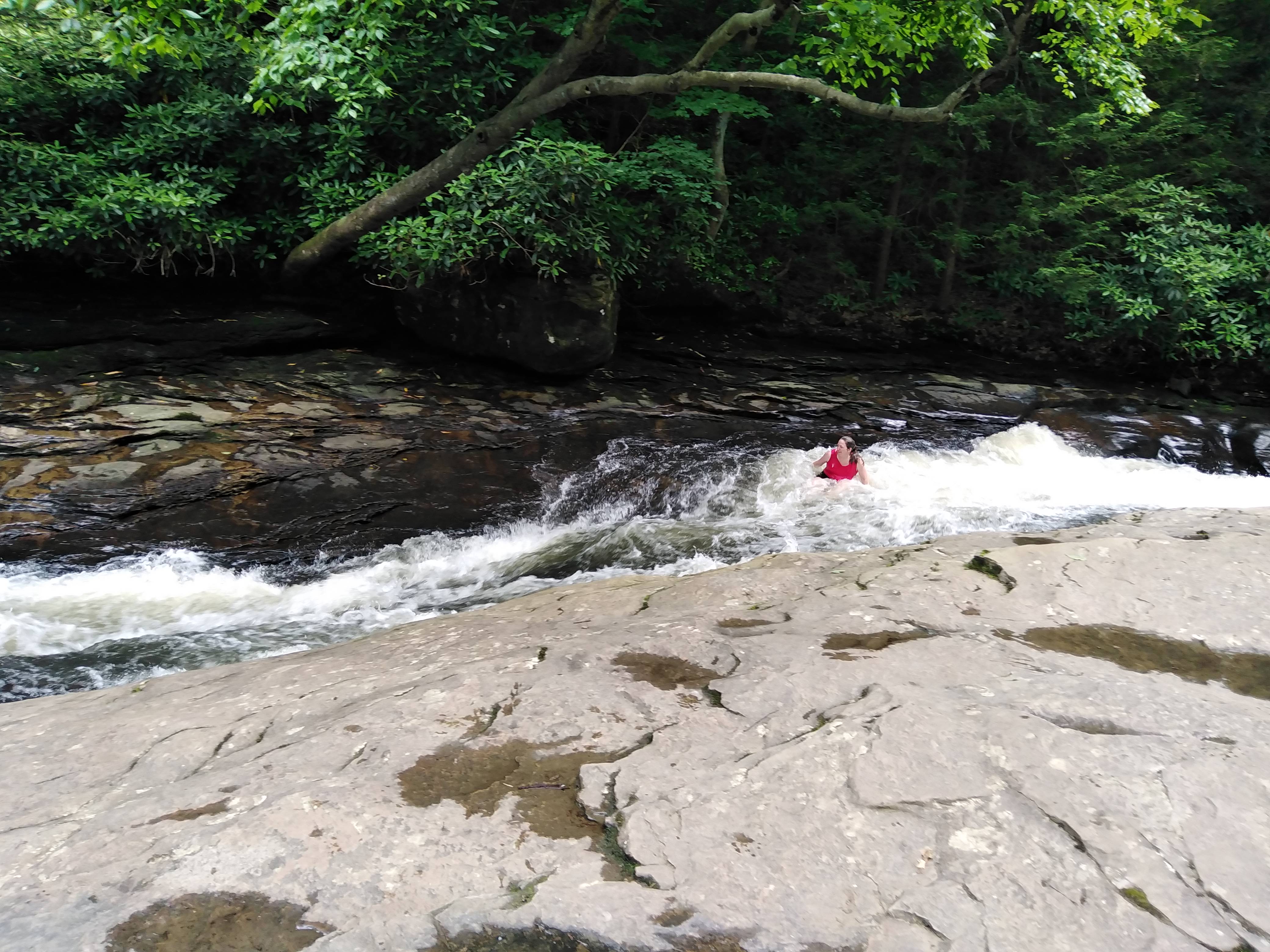 Fuimos a un tobogán de agua natural. Desde antes de verlo supe que ni de broma me lanzaría. Una vez frente a él, sentí escalofríos ante la idea de hacerlo, sólo de pensarlo me empezó a doler la espalda. Había varias personas y la mayoría admiraban el tobogán esperando a ver quién se atrevía a lanzarse, en realidad, no fueron muchos. Mis amigos ya estaban más que listos para hacerlo. El primero fue Fabricio y después Susan. Yo estaba muy nerviosa, me preocupaba que pudieran lastimarse; sin embargo, lo disfrutaron tanto que volvieron a lanzarse. ¡Qué locura y qué valientes!
