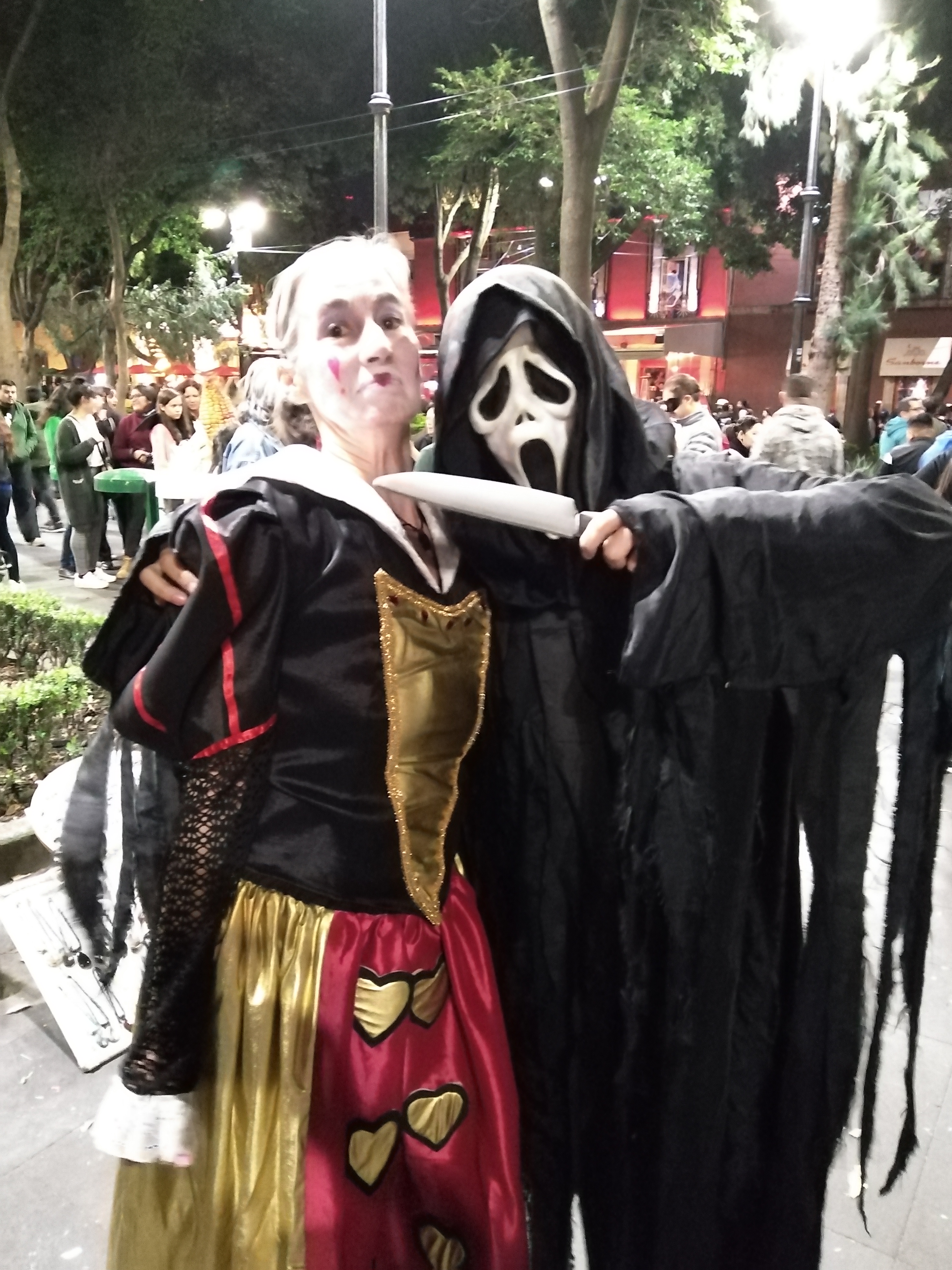 Este año ha sido la mejor noche hasta ahora. A mi alrededor hubo alegría, risas, entusiasmo, música y ganas de divertirse. Admiro la capacidad de las personas de posesionarse de sus personajes, de dar miedo o dar risa (según sea el caso). Nos encontramos a un Freddy Mercury adolescente cantando feliz, a un Jack Sparrow bailador, a una bruja siniestra. Yo fui la Reina de Corazones acompañada de Mario Bros, quien fue muy popular sobre todo entre los niños.