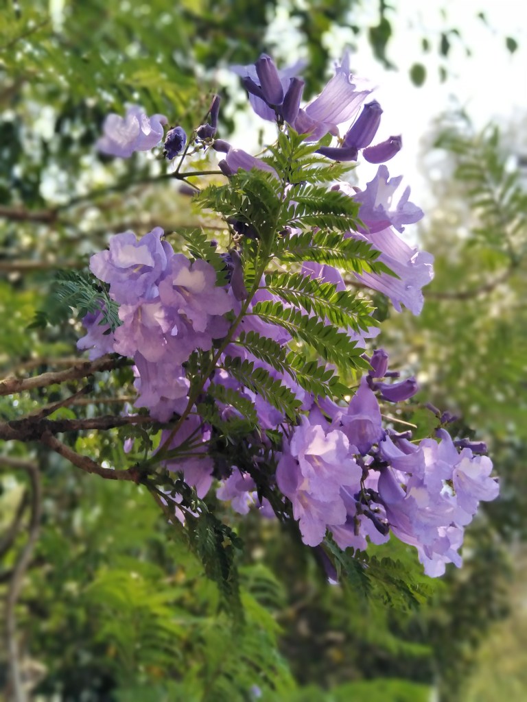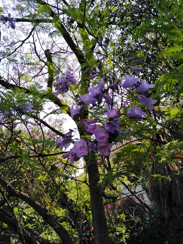 ¡Hola! No sabes cómo extraño caminar en las calles llenas de Jacarandas en esta época. Cada año me gusta salir a buscarlas con mi cámara. Me pesa no poder hacerlo ahora, sin embargo, ayer hice una breve visita a mis papás y en el camino me encontré unas esplendentes, saludables y colmadas de flores. El año pasado no la pasaron tan bien porque tenían mucha plaga. ¡Qué fuertes están ahora!