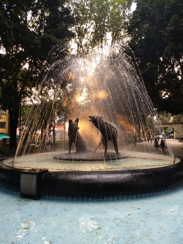 En fin, me concentro en el camino, la belleza de las calles, los árboles y las flores. Me invaden los recuerdos bonitos pues corro en las calles de siempre, las de mi infancia, adolescencia y edad adulta. Mientras corro llegan imágenes que me obligan a sonreír. He corrido por el parque donde aprendí a andar en bicicleta, por la calle donde está la que fue casa de mi abuelita, alrededor del centro de Coyoacán pues el parque sigue cerrado. Ayer me invadió la nostalgia de sentarme a la Fuente de los Coyotes. Recordé el atardecer que vi justo ahí hace dos años, en Octubre, mientras saboreaba un helado de cempasúchil.