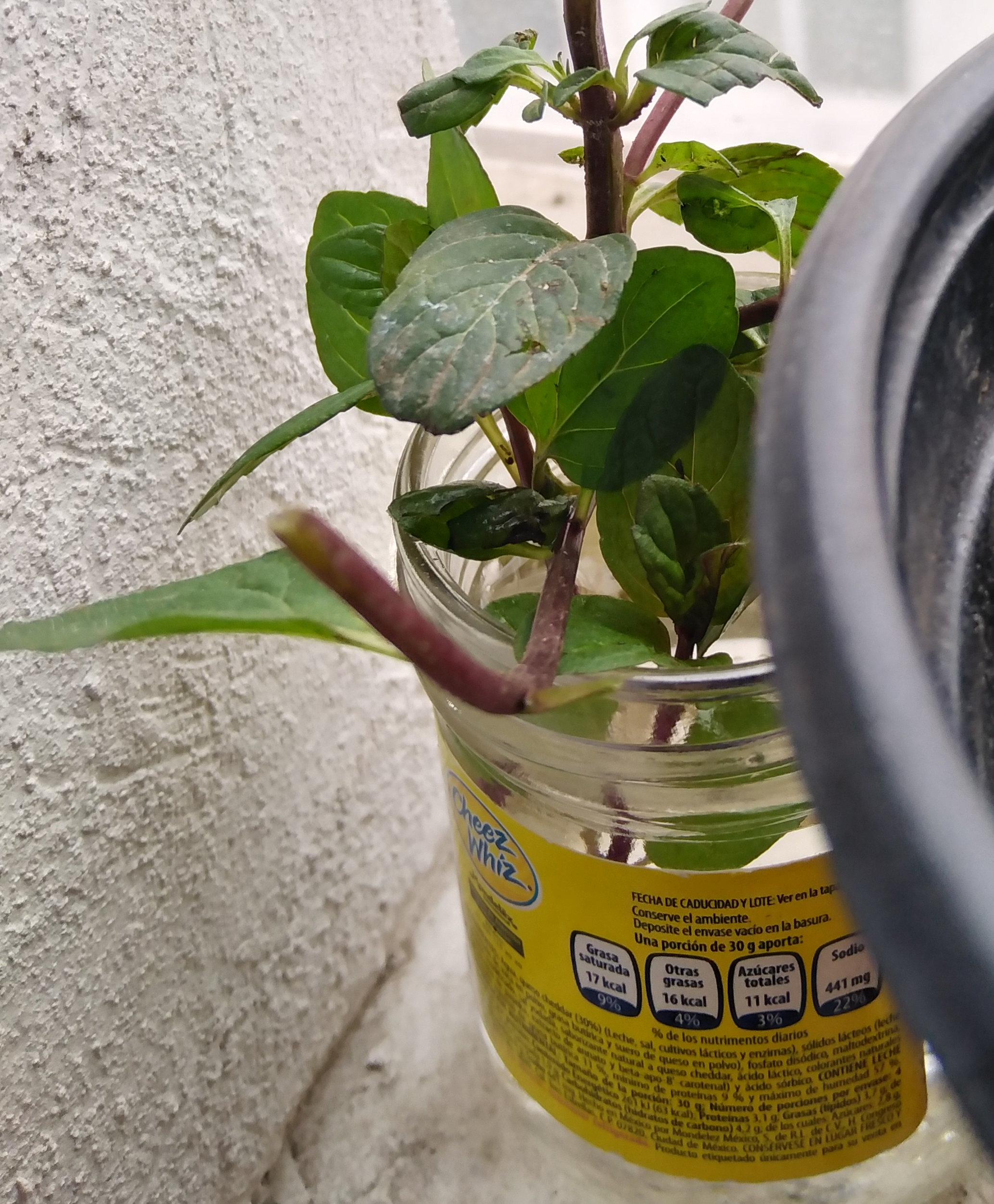 En fin, no te rías, pero otra vez mis perritas hicieron travesuras y se comieron la menta que sembré hace poco. No te voy a negar que se me salieron las lágrimas pero reaccioné rápido. Rescaté las ramitas y las puse en agua. Confío en que pronto llegarán las raíces para poder plantarlas en la tierra de nuevo. Así planté la primera: le volé una ramita a la menta de mi hermana, la puse en agua y listo, hasta esta mañana, ya tenía una planta grande.